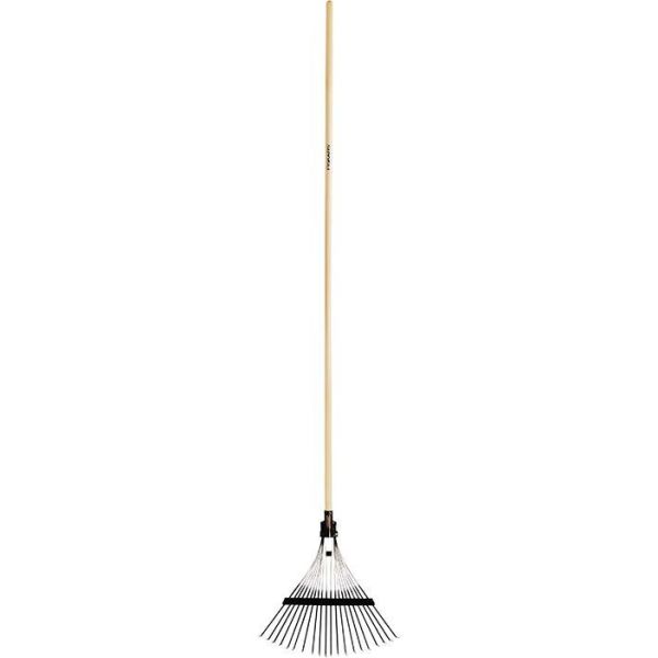 En 2030x440 mm lövräfsa med 20 pinnar. Lämpar sig för räfsning samt rensning av gräsmattan oavsett om det gäller kvistar eller gräs.