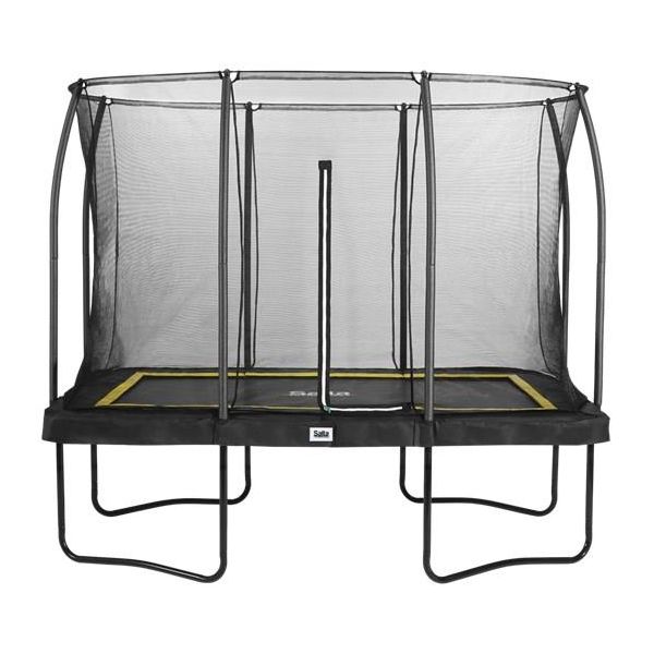 Salta Comfort Edition är en extraordinär och prisvärd studsmatta. Den vackra designen av denna studsmatta passar perfekt till alla omgivningar och är utvecklad i enlighet med de nyaste standarderna, vilket gör den extremt säker. Stålramarna i den slitstarka Salta Comfort Edition är galvaniserade och försedda med en svart, blank beläggning. Konstruktionen av stålringen håller säkerhetsnätet i sin eleganta, formade position och det mjuka, finmaskiga nätet förblir stramt. Dessutom har studsmattan en 20 mm tjock och 29 cm bred skyddsmatta, så de dubbelförzinkade, koniska fjädrarna är helt avskärmade. Det dubbelsidiga blixtlåset ger enkel tillgång till studsmattan, så att du enkelt kan komma in och stänga Salta Comfort Edition. Studsmattan erbjuder en unik hoppupplevelse som håller i många år.