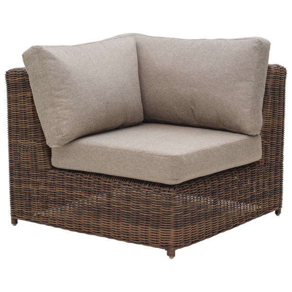 Klassiska möbler i rund konstrotting med rustikt utseende. Generöst sittutrymme och alldeles lagom lutning gör att du vill koppla av länge. Tack vare de olika delarna kan du komponera just den grupp som passar din uteplats, med Glendon kan du verkligen förlänga hemmet utåt.
