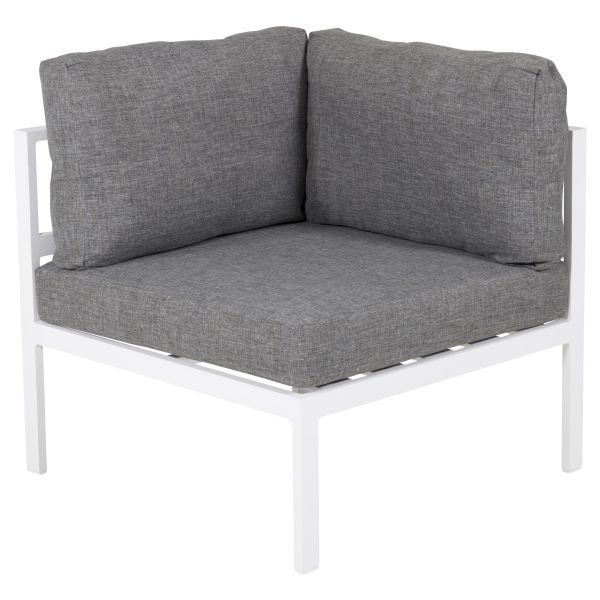 Copacabana 9383-400 är en hörndel, en modul av loungesoffa Copacabana som är vit och grå. Med moduler kan du bygga ihop din egen soffgrupp efter tycke och smak. Här kan du välja antal sitsar, helt enkelt anpassa efter utrymme och behov. Hörndelen tillhör serien "Copacabana" - skapa plats för en gäst till.