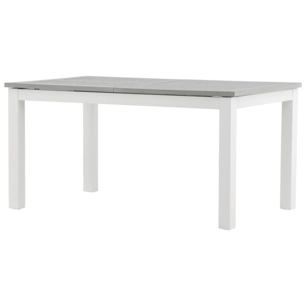 Albany 4120-400 är ett förlängningsbart matbord med alla rätt – stilrent, praktiskt och tidlöst. Bordsskivan är i grå aintwood och stommen i vit aluminium; två slitstarka material som ger dig ett bord som står sig över tid. Den raka nordiska formen gör ett robust och städat intryck. Möblera uteplatsen och skapa en charmig mittpunkt att samla nära och kära kring.