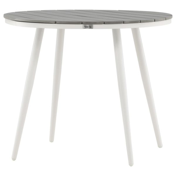 Break 2079-400 är ett runt matbord, perfekt för dig som vill skapa en trivsam, social och inbjudande känsla till uterummet eller altanen. Här får samtal och skratt flöda fritt kring ett stilrent matbord i klassisk look. Matbordet har en grå bordsskiva i aintwood och ett klassiskt underrede i vit aluminium. Gör dig redo för utelivet och låt tiden här bli dagens höjdpunkt.