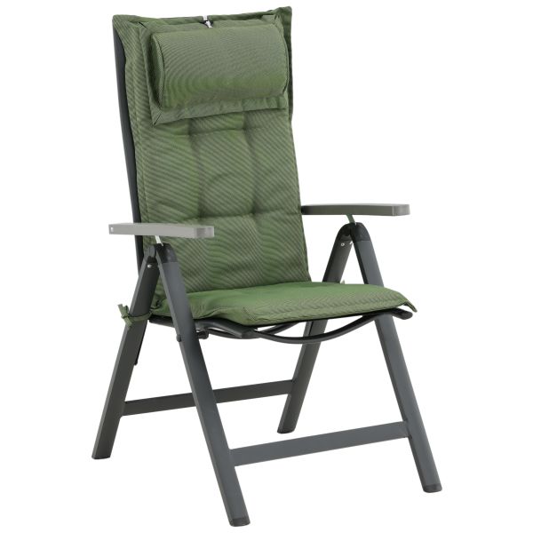Olive 3102-325 är en stolsdyna till uteplatsen. Linneliknande 5-positionsdyna i olivgrön kulör med nackkudde som är lika stilsäker som bekväm.