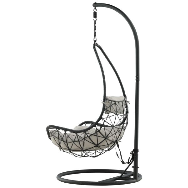 Vide 9547-408 är en hängstol för uteplatsen. Gör sommarhänget till något alldeles extra i den här läckra hängstolen. Designen är genomtänkt och utformad med ett stativ i svart stål och korg av konstrotting där grå fluffiga kuddar ingår. Möblera uteplatsen med en riktig designikon som inte bara blir ett blickfång i sommar utan även din nya favoritplats att koppla av på.