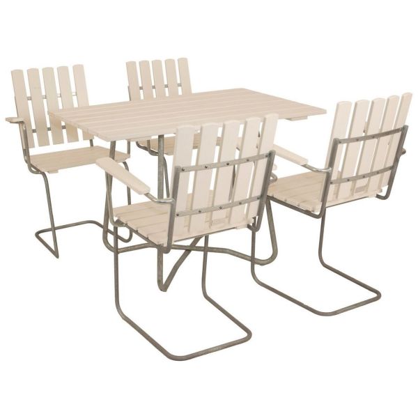 Matgrupp med bord och fyra fåtöljstolar i klassisk serie som Eden Wood har tillverkat i mer än 40 år. Alla möbler i serien har samma bakomliggande tanke: komfort, design och funktionalitet. Den stilrena designen, och de bekväma möblerna skapar ro för både kropp och själ. Slå dig ned och känn efter, så förstår du. Trädetaljerna i möblerna är tillverkade i norrländskt furu, som är FSC-certifierat. FSC uppmuntrar till miljöanpassat, samhällsnyttigt och ekonomiskt livskraftigt bruk av världens skogar. Bordsstativen är gjorda i svenskt 25 mm rör som är varmgalvade. Bordsskivan består av planhyvlat 25×100 mm virke.