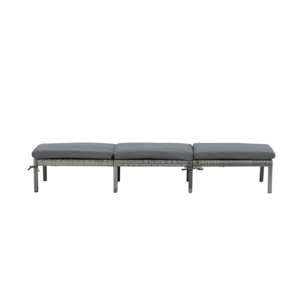 Bilbao 1006-004 är en bekväm solsäng i grå konstrotting till uteplatsen. Stolens ryggdel är justerbar för extra bekvämlighet och en matchande grå solsängsdyna ingår.