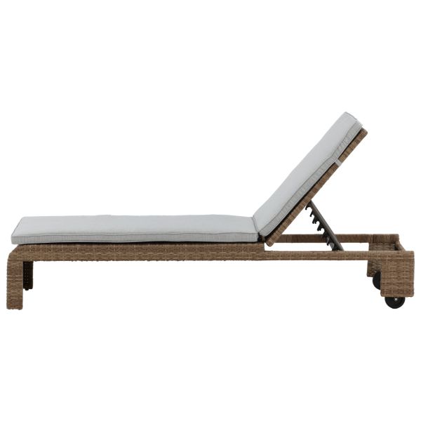 London 9262-007 är en solsäng för uteplatsen. Skapa en lyxig oas på din uteplats i sommar. Designen är genomtänk med en stilren look och praktiska funktioner. Här får du naturfärgad solsäng i konstrotting med vit dyna, hjul och justerbart ryggstöd. Välj själv om du vill sitta upp och läsa en bok eller sträcka ut dig i viloposition och njuta av värmen från solen.
