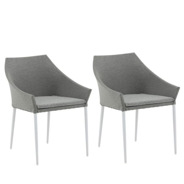 Spoga 2076-400 är en karmstol likväl som matstol i tuff helklädd design med ben i vit pulverlackerad metall. Rygg och sits med integrerade armstöd i grått polyestertyg har skön sittkomfort och bekvämt sittdjup. Matcha med ett snyggt matbord så får du en komplett matgrupp till antingen uterummet eller altanen..