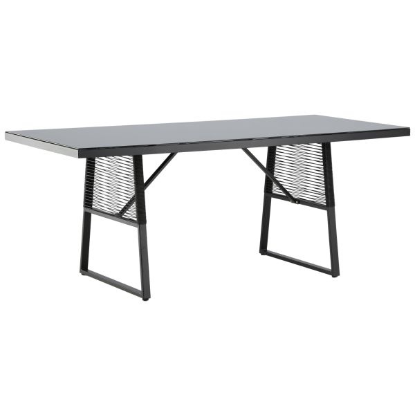 Dallas 1524-408 är ett rektangulärt matbord tillverkat i svart aluminium. Bordsskivan är i mörkt glas, bordsstommen har schyssta repdetaljer som ger bordet ett kaxigt och smakfullt uttryck. Matcha med stolar i samma serie för en komplett matgrupp. Gör dig redo för härliga sommarstunder tillsammans med familj och vänner.