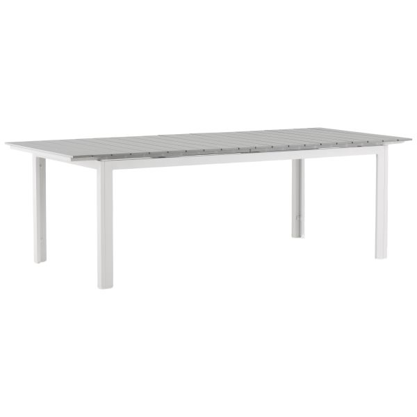 Levels 4135-400 är ett iögonfallande matbord som står sig över tid. Förlängningsbart, rektangulärt matbord i stilren design med en bordsskiva i grå aintwood och ett underrede i vit metall. Det passar utmärkt både i uterummet och på uteplatsen och går att anpassa till både små och stora sällskap.