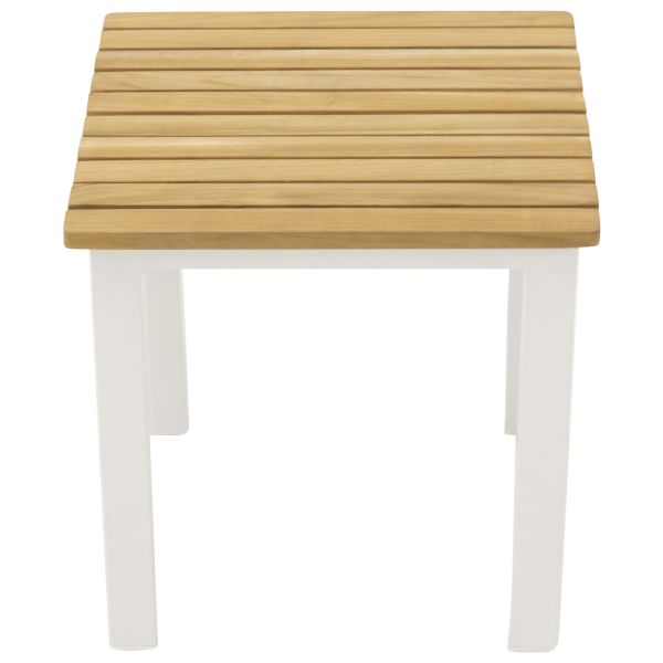 Mexico 9295-400 är ett sidobord till uteplatsen, perfekt som avlastningsbord. I vit aluminium och teak.