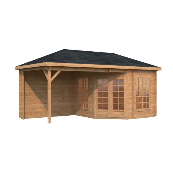 Förläng utesäsongen med dina nära och kära med lusthuset Melanie. Släpp in den ljumma sommarluften genom de stora, glasade dörrarna och låt rummet fyllas med ljus genom de höga fönstren. Fönstren är berikade med vackra detaljer som klassisk spröjs och från och med 2022 har alla hus i Melanie-serien raka stockändar på fönster och dörrar. Denna modell har även ett extrautrymme under samma tak för förvaring av trädgårdsredskap och grill.