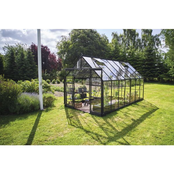 Med tre olika storlekar: 8,1 m², 9,7 m² och 11,2 m² erbjuder ICON 8 plats för upphöjda bäddar och odling direkt i marken, arbetsyta eller en mysig sittplats. Resultatet är ett mångsidigt växthus som kombinerar funktionalitet med en behaglig atmosfär – och erbjuder fler möjligheter än du kanske förväntar dig.