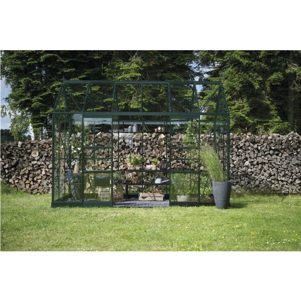 Detta växthus finns i två storlekar: 7,3 m² och 9,7 m² och levereras med 3 mm härdat glas i långa rutor (några glasrutor är delade med en H-list), säkert monterade med robusta G-klämmor. ICON PLANTHOUSE finns i grönt eller svart – med en modern, strömlinjeformad design som smälter harmoniskt in i alla trädgårdar.
