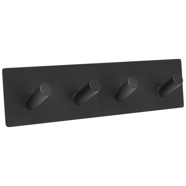 Svedbergs A04-S är en svart, matt handdukshängare i rostfritt stål med 4 krokar. För väggmontage. Med dubbelhäftande 3M-tejp.