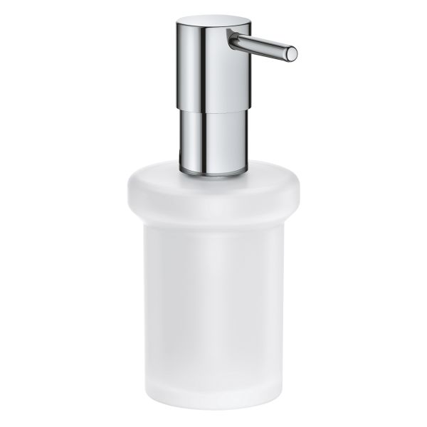 GROHE Essentials Tvålpump Universal är en perfekt detalj för alla badrum. Med tidlös design och material av högsta kvalitet ser den eleganta GROHE Essentials-tvålpumpen perfekt ut i alla badrum. Den här eleganta tvålpumpen är konstruerad för att användas med GROHE Essentials-hållaren (40369001), som också har en reptålig kromad GROHE StarLight-ytbehandling som kommer att glänsa under många år framöver. Och tack vare GROHE QuickFix-installationssystem med tydliga stegvisa instruktioner går den enkelt att montera. Tvålpumpen passar i följande hållare: Essentials (40 369 xx1/102 466 2430), Essentials Cube (40 508), Bau Cosmopolitan (40 585), Essentials Authentic (40 652).