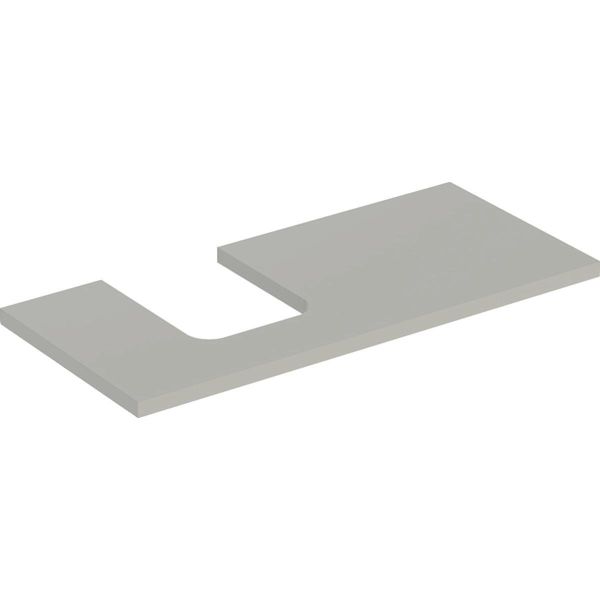 Tvättställsplatta med skålformad ursparing till vänster. B: 105cm, H: 3cm, T: 47cm.