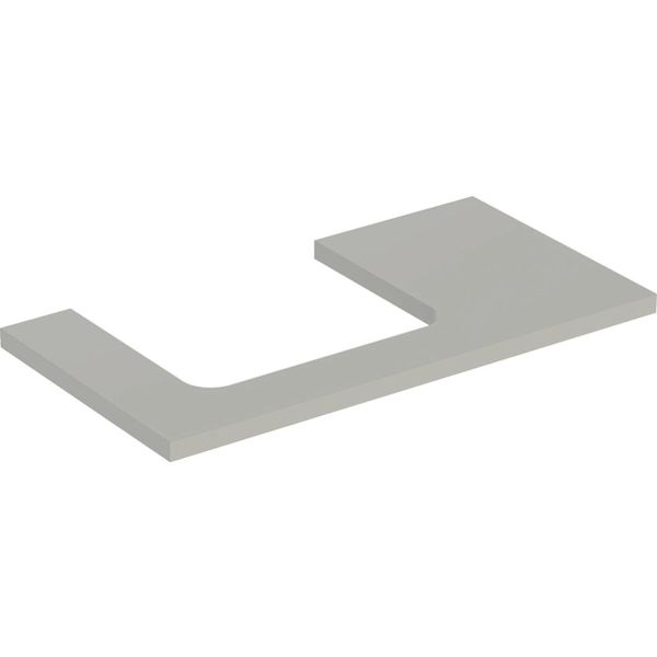 Art.nr: 3129718Tvättställsplatta med rektangulär ursparing till vänster. B: 90cm, H: 3cm, T: 47cm.
