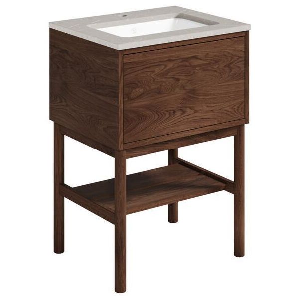 med ben, 60 cm, brun ek/grå sten, 1 blandarhål