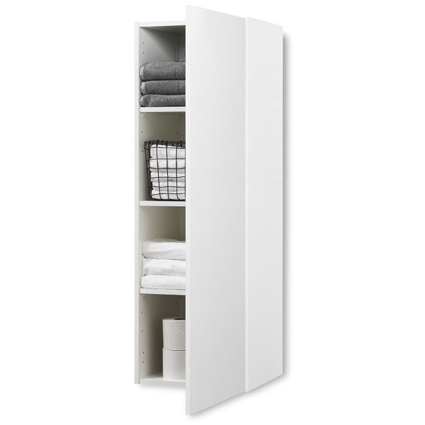 Sidoskåp på 1198x400x350 mm (HxBxD) som har en stabil stomme med tät fuktskyddad folierad spånskiva. Sidoskåpet är svensktillverkat och har två flyttbara hyllplan och en fast. Standardiserad upphängning. Dämpande gångjärn.
