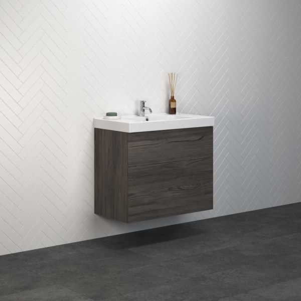 Dansani Luna Menuet är ett 81x45 cm tvättställ i vit porslin och tvättställskåp med lådor.