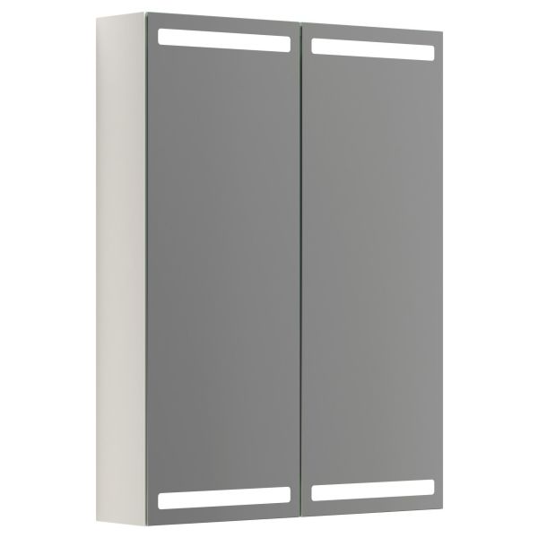 Art.nr: 3124066Ett 60 cm spegelskåp med integrerad belysning i topp och botten samt ljusstyrning. Ljusfälten ger bra belysning inuti spegelskåpet och samtidigt en mycket bra arbetsbelysning ner över spegeln och tvättstället.