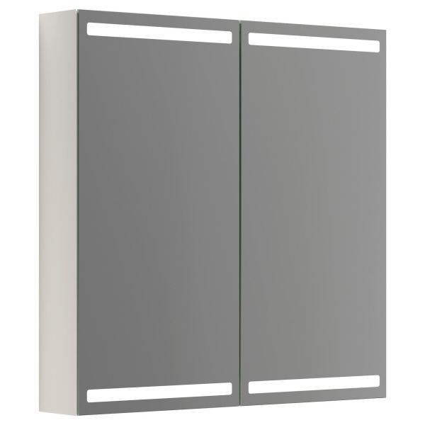 Art.nr: 3124071Ett 80 cm spegelskåp med integrerad belysning i topp och botten samt ljusstyrning. Ljusfälten ger bra belysning inuti spegelskåpet och samtidigt en mycket bra arbetsbelysning ner över spegeln och tvättstället.