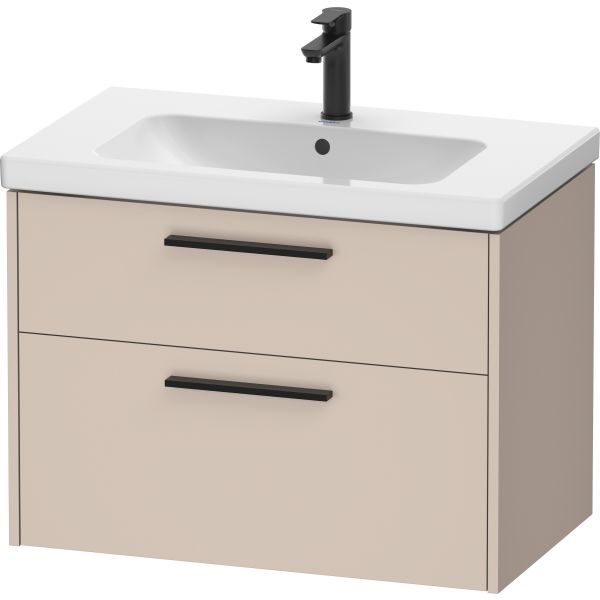 Duravit D-Code tvättställsunderskåp med 2 utdragslådor, helt i Taupe melamin, till tvättställ D-Code # 239980, handtag diamantsvart. Tvättställ ingår ej.