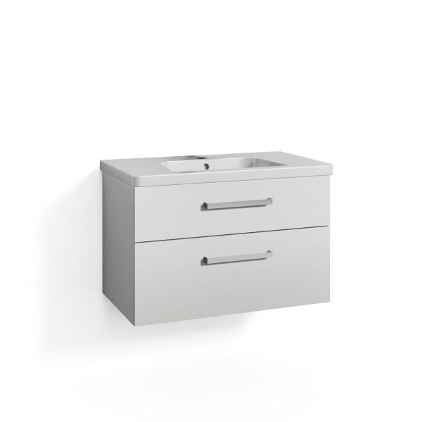 Svedbergs Signum 270380 är ett tvättställsskåp med tvättställ och lådor. Underdel med 2 lådor. Vit, fuktskyddad spånskiva.