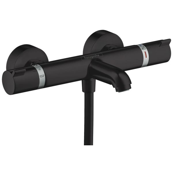 Badkarsblandare 150 c/c i matt svart mässing. Blandaren har en maximal flödesmängd på 20 l/min (för utloppspip) och en temperaturspärr vid 38°C.