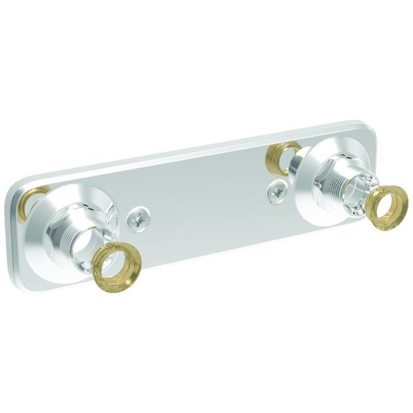 Art.nr: 3051058Blandarfäste för 150 c/c i förkromad mässing som passar till Vatette V6 väggenomföringssystem.