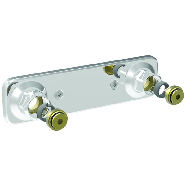 Art.nr: 3051061Blandarfäste för 160 c/c i förkromad mässing som passar till Vatette V6 väggenomföringssystem.