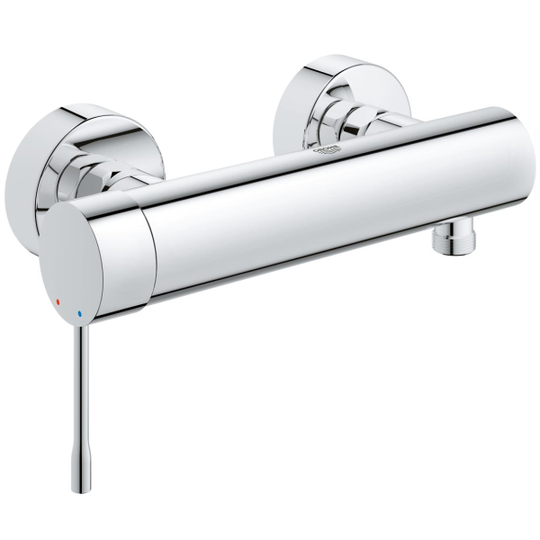 Den här GROHE Essence-duschblandaren har ett fantastiskt utseende och ett halvtums duschutlopp. Den är konstruerad med elegant cylindertema och försedd med en glänsande kromad GROHE StarLight-ytbehandling, viket skapar en klassisk stämning i badrummet. Den inbyggda GROHE SilkMove-tekniken gör att du kan variera vattentemperaturen och flödet exakt och enkelt. En annan praktisk funktion är en stoppventil som ser till att avloppsvatten inte kommer in i dricksvattenledningen, vilket gör den till det perfekta duschalternativet.