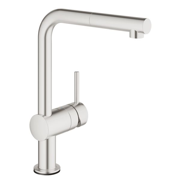 Ge renligheten i köket högsta prioritet med den här rörelseaktiverade elektroniska blandaren. Du behöver bara röra vid blandaren en gång med handleden för att vattnet ska börja flöda, och en gång till för att stänga av den. Blandaren förblir ren och 100 % hygienisk medan du kan fortsätta med andra sysslor. Den innovativa EasyTouch-tekniken innebär att du aldrig mer behöver lämna fläckar på köksblandaren, medan den hållbara matta SuperSteel-ytbehandlingen gör att blandaren alltid ser ut som ny. Minta Touch-ettgreppsblandaren har också en hög pip med 360° svängområde för ökad flexibilitet, medan det utdragbara duschhuvudet gör det ännu enklare att fylla kastruller och rengöra diskhon. Dessutom ger SilkMove-insatsen smart styrning av vattenmängd och temperatur. Designkonceptet bakom Minta Touch, med ett klassiskt utseende som ändå känns uppdaterat, gör den perfekt för ditt eleganta och moderna kök. Den här blandaren är toppmonterad för enkel installation och är försedd med GROHEs Easy Installation-system med tydliga anvisningar.