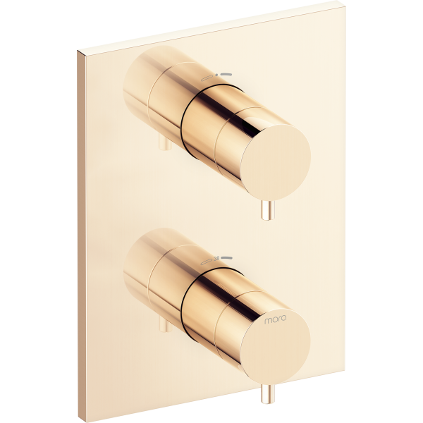 Täckplatta i mässing - yttre del för tinbyggnadsblandare. Består av mängd- och tempvred. Utförande: Polerad mässing (pvd).