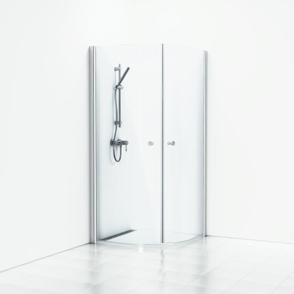 Svedbergs Skoga halvrunda hörndusch har en mjuk och följsam formgivning som skapar lugn och harmoni. Gångjärnen gör det enklare att öppna och stänga dörrarna och släplisten håller tätt mot golvet. Profilerna tillåter rördragning. Höjd: 198 cm. Dörröppning: 99-128 cm.