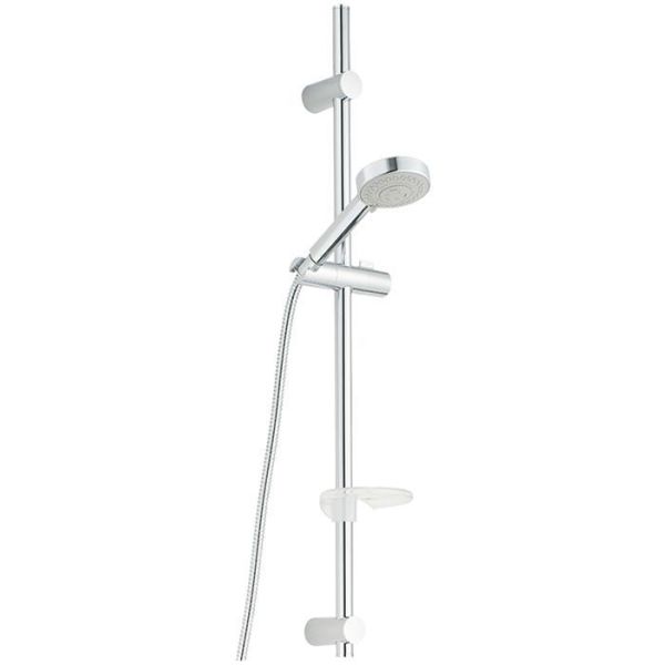 Art.nr: 2363455Duschset som består av en 3-strålig handdusch, slang, duschstång och tvålhylla och har smarta lösningar såsom flexibelt övre väggfäste och kalkavvisande sil.