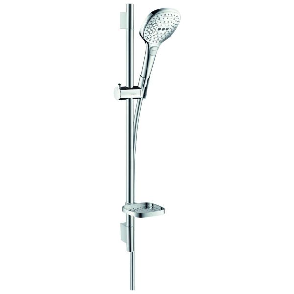 Art.nr: 3087174Duschset Raindance Select E120 med 3jet handdusch. Setet består av handdusch, duschstång, duschslang, glidfäste och tvålkopp.