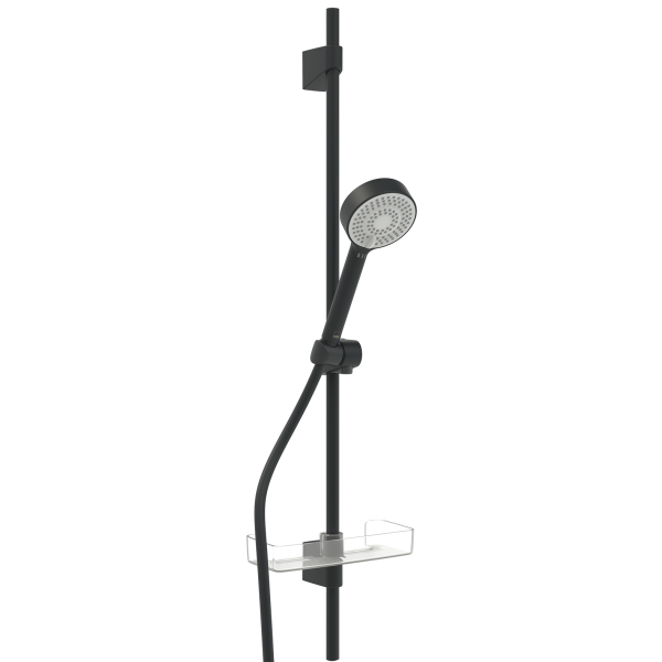 Oras Apollo, matt svart, duschset bestående av en handdusch med tre strållägen, Eco-flöde, duschstång, duschslang 1750 mm och en tvålkopp.