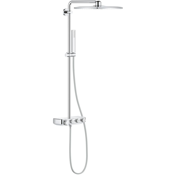 Ett duschset med termostat för väggmontage. Setet innehåller en horisontell duscharm på 450 mm, en SmartControl-termostat, en huvuddusch med strålplatta i krom och två strålmönster (GROHE PureRain och Centered Jet spray), en handdusch med justerbar höjd med glidande element och en duschslang. Duschsystemet har bl.a. egenskaper som GROHE DreamSpray, GROHE Cooltouch, GROHE TurboStat kompakt insats med vaxbaserad keramisk kropp och GROHE EcoJoy vattenbesparande teknologi.