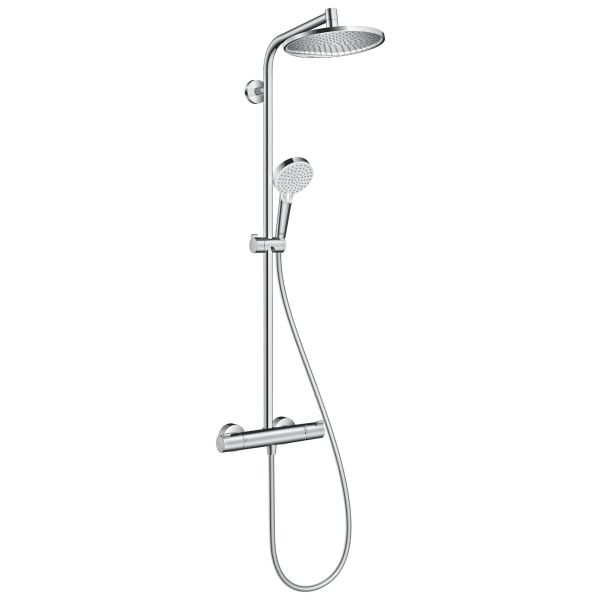 Art.nr: 4066089Hansgrohe Crometta S duschsystem innehållande takdusch, handdusch och blandare.