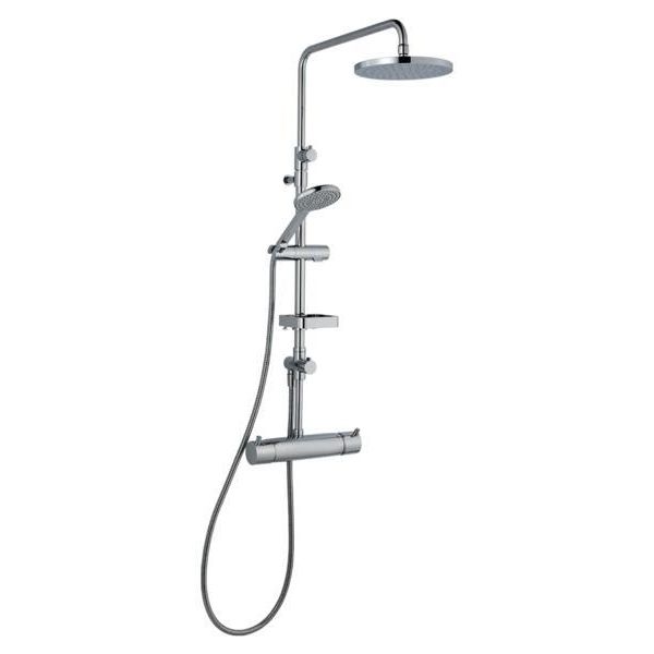 Takduschset med takdusch, handdusch och säkerhetsblandare med centrumavstånd på 160 mm. Handduschen har luftinblandning för extra mjuk stråle. Både takduschen och handduschen har Eco Flow på 12 l/min. Duschstången har teleskopfunktion som gör den justerbar med 410 mm.