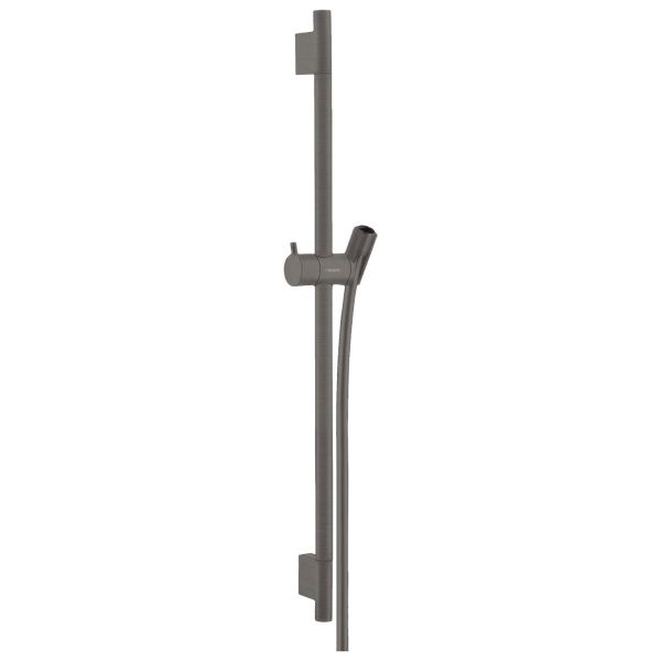 Hansgrohe Unica'S Puro är en duschstång på Ø22x650 mm som levereras med slang och glidfäste. Duschsidig vridvirvel förhindrar förvridning av duschslangen. Duschskenan i metall är steglöst inställningsbar. Alla delar har borstad svart krom-finish.