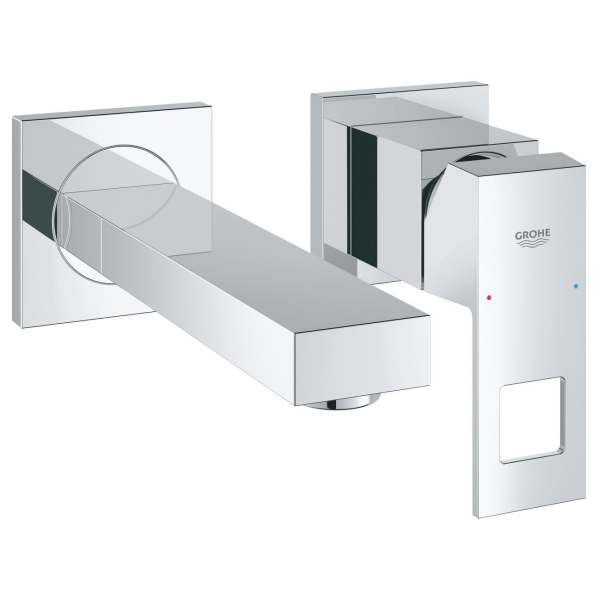 Med sin unika blandning av vass modern design och lyxiga prestanda, utgör den här väggmonterade tvåhåls GROHE Eurocube-blandaren ett fantastiskt tillskott till ditt badrum. Blandaren har en pip med ett utsprång på 171 mm och innehåller en rad praktiska funktioner. GROHE AquaGuide-luftaren går att ställa in så att vattenflödet passar dina behov, vilket skänker maximal flexibilitet åt alla dina badrumsrutiner. Den glänsande och reptåliga kromade GROHE StarLight-ytbehandlingen ger en lyster som varar i många år. Med sin diskreta geometriska design och sina perfekta funktioner utgör den här blandaren en enkel, men sofistikerad uppgradering!