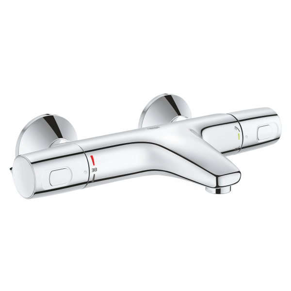 Är du trött på att fylla på varmt eller kallt vatten i badkaret för att hitta rätt temperatur? Då är det dags för en GROHE-termostat: tack vare GROHE TurboStat-tekniken fyller den här moderna badkarsblandaren med duschutlopp badkaret tillförlitligt med vatten i önskad temperatur. AquaDimmer Eco-greppet är försett med en inbyggd omkastare så att du smidigt kan byta mellan badkar och dusch med samma grepp. För att skydda familjen håller GROHE CoolTouch-tekniken kranhuset svalt, medan GROHE SafeStop-skållningsskydd förhindrar användare från att höja temperaturen av misstag. För att skona miljön minskar GROHE EcoJoy-tekniken vattenförbrukningen. Den här badkarstermostaten är försedd med ergonomiska metallgrepp och en polerad, kromad GROHE StarLight-ytbehandling som gör den mycket slitstark.