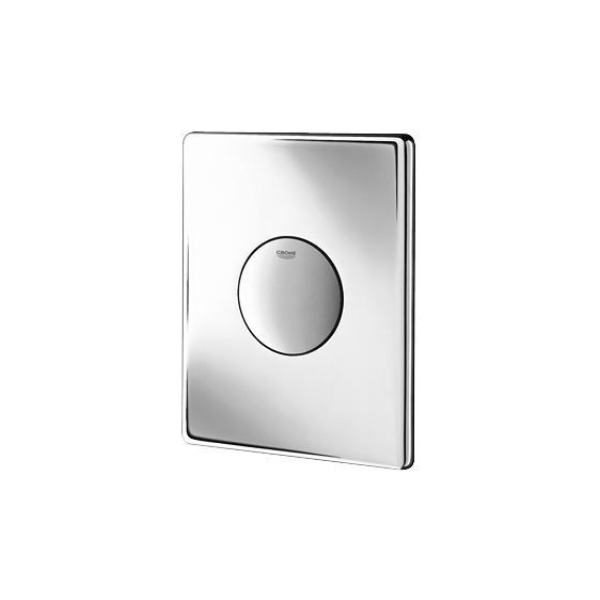 Skate tryckplatta på 156 × 197 mm för enkelspolning, till pneumatisk avloppsventil. Lodrätt och vågrätt montage. Av ABS, med GROHE StarLight kromyta samt GROHE EcoJoy vattenbesparande teknologi.