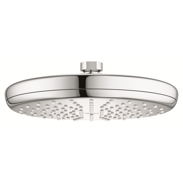 För en hållbar och högpresterande takdusch med stil och funktionalitet som kan förvandla ditt badrum är GROHE Vitalio Start-takduschen ett utmärkt val. Det 210 mm breda duschhuvudet levererar det avkopplande Rain-strålmönstret som omsluter dig i ett mjukt men jämnt vattenflöde, medan GROHE DreamSpray-tekniken säkerställer ett jämnt flöde från varje munstycke. Duschhuvudet är kulledsmonterat och kan vinklas upp till 15 grader för extra komfort. Den eleganta designen och den höga kvaliteten håller i många år – duschen har GROHE SpeedClean-silikonmunstycken som rengörs från kalk och smuts med ett finger, och GROHE Long-Life Shine-kromytan är både slitstark och lätt att rengöra. Den är även vattenbesparande med GROHE Water Saving som minskar förbrukningen med upp till 40 % (9,5 l/min) utan att försämra prestandan. Den är lämplig för användning med genomströmningsvärmare och kräver minst 1,0 bars vattentryck. Inga verktyg behövs – installationen är förvånansvärt enkel!