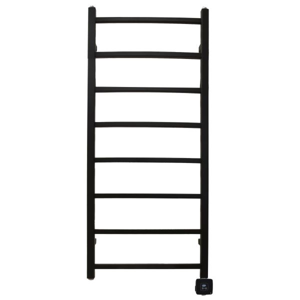 Somatherm Dottevik elegant och stilren svart eldriven handdukstork med fyrkantsrör. TKFD-512 kommer med styrningen Olle som har inbyggd dimmer och timer, effektreglering i fem steg samt inställning av fem olika tidsintervaller från 2 timmar upp till 10 timmar. Olle kan också regleras via app. En elpatron i det ena lodräta röret värmer vätska som sedan cirkulerar och åstadkommer en jämn uppvärmning av torken. Handdukstorken monteras alltid med elpatronen nederst och luftnippeln överst.