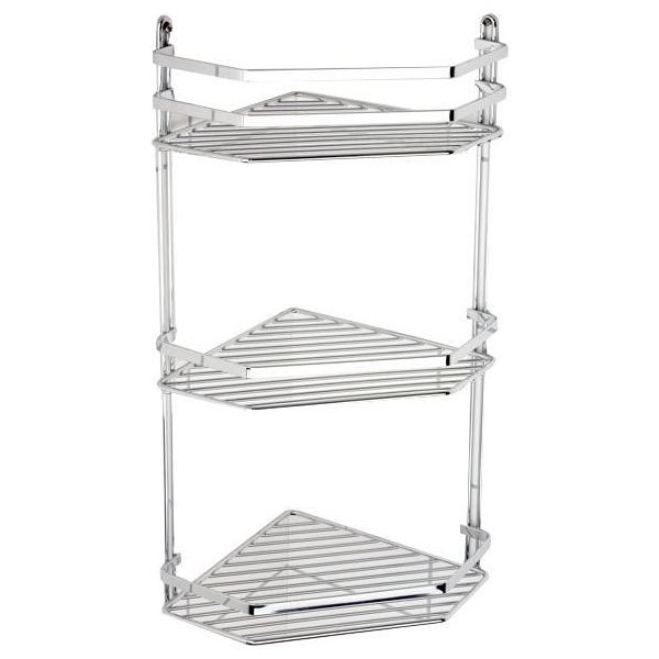 Arrow 11040 är en hörnhylla med tre hyllplan, tillverkad i krom. För montering på vägg.