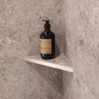 Art.nr: 2890060Elegant duschhylla som monteras i 90° hörn. Duschhyllan kan monteras med eller utan keramiska plattor i hyllan. Vid plattsättning fästs hyllans kant bakom plattan.